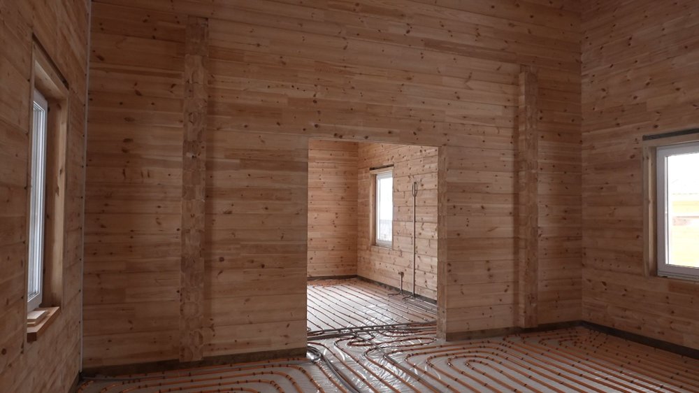 Системы теплого пола — отличный выбор для домов из клееного бруса, так как они создают комфортное тепло от пола, не пересушивая воздух. Теплый пол может быть водяным или электрическим.