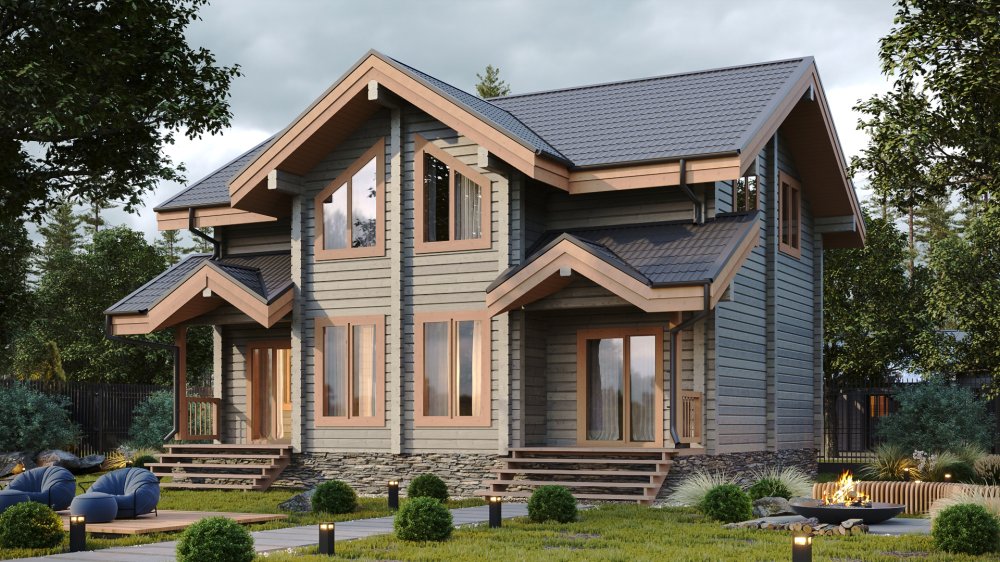 Уютный двухэтажный дом из клееного бруса, который предназначен для комфортного и спокойного проживания большой семьи. В доме есть просторная кухня – гостиная, пять спален, два сан. узла, два гардероба и тех. помещение. Дом в котором удачно совместились комфорт, функциональность и красота.