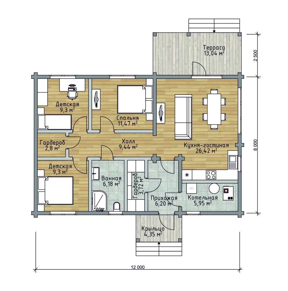 Проект доступен в других сечениях бруса. Цена по запросу.В ипотеку
