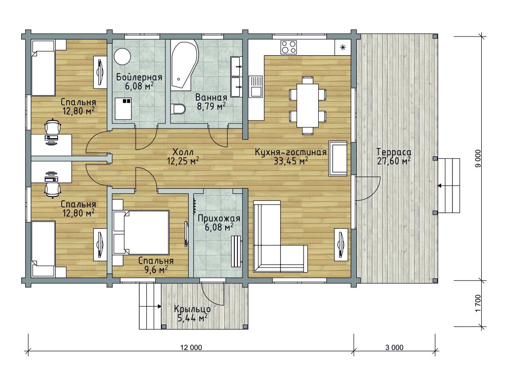 Проект доступен в других сечениях бруса. Цена по запросу.
