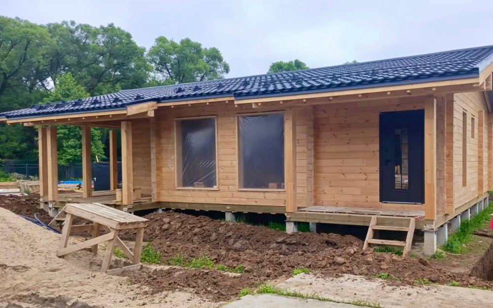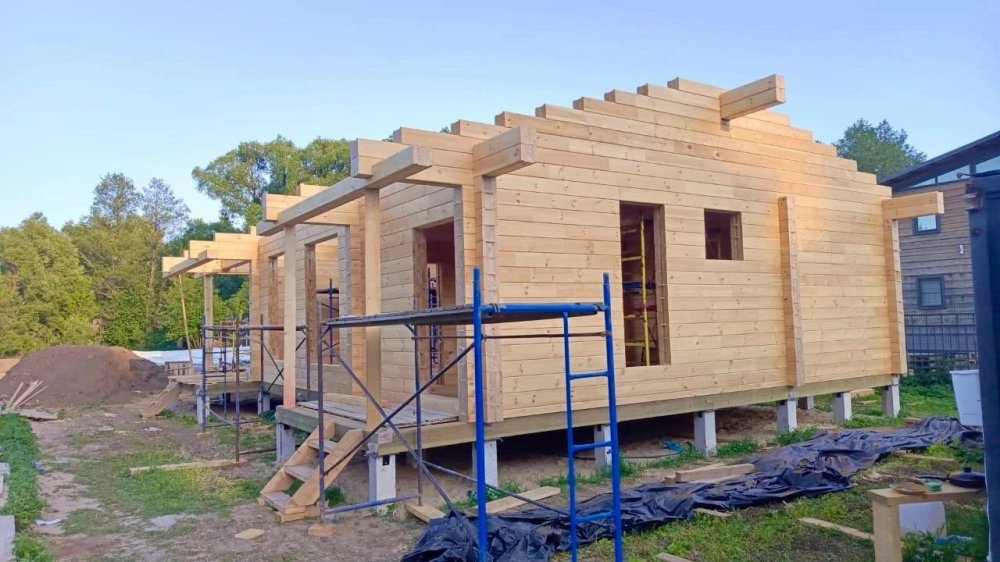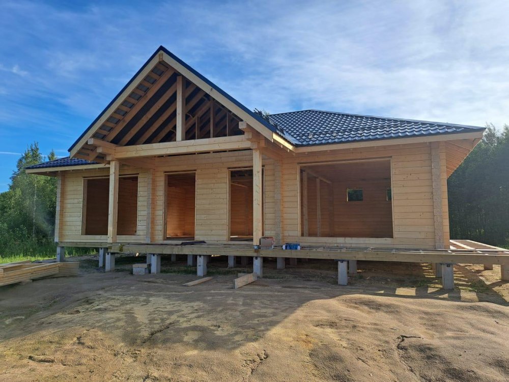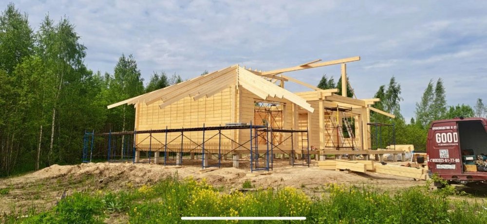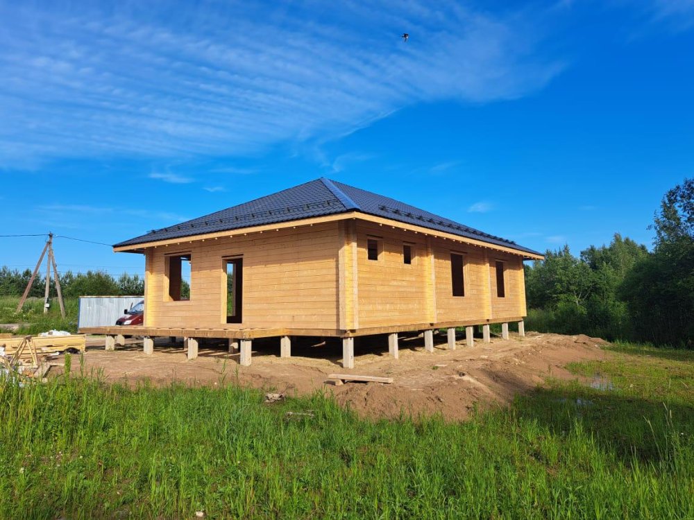 В окрестностях Санкт-Петербурга, в поселении Поляны, Выборгского района уже собрали и установили на сваи холодный контур дома по проекту Good 135. Скоро приедут шикарные панорамные окна в пол.