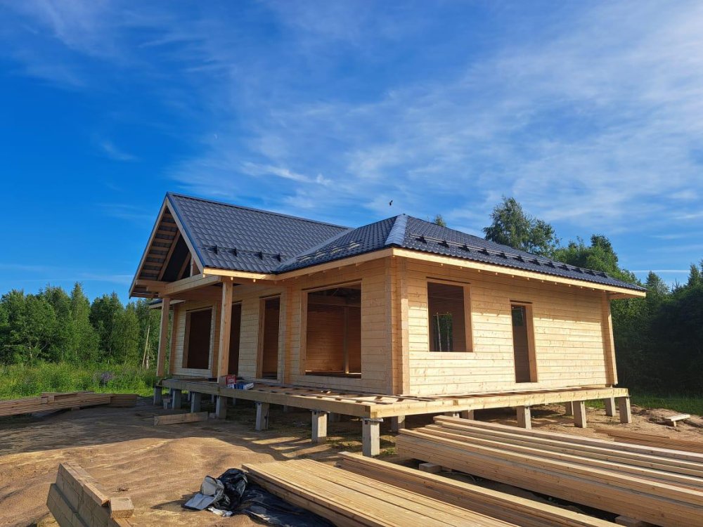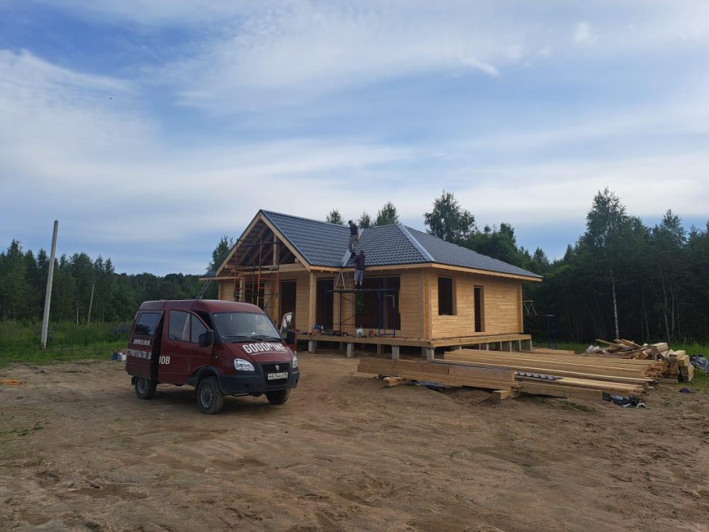 Так же в Подмосковье уже собран холодный контур дома по нашему проекту Good 125 в Серпуховском районе, деревне Станково. На этой неделе положили металлочерепицу и смонтировали снегозадержатели. Этот дом мы строим по программе льготной ипотеки для молодых семей.