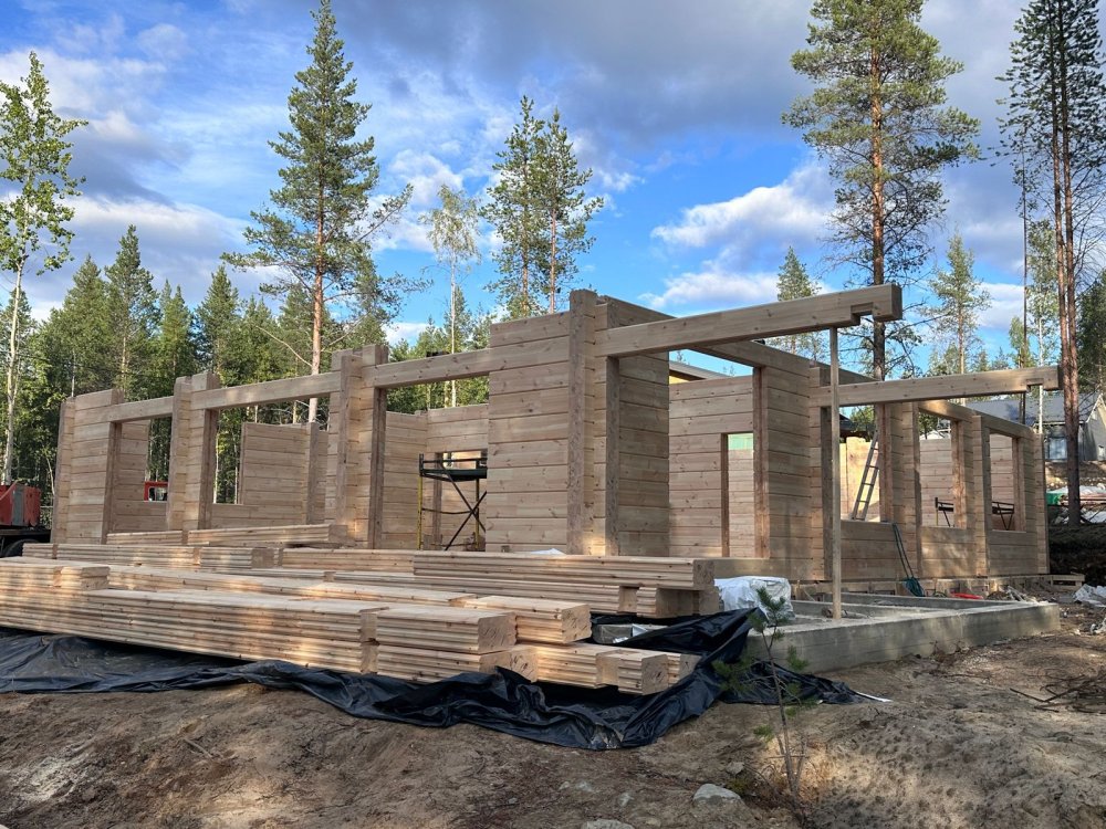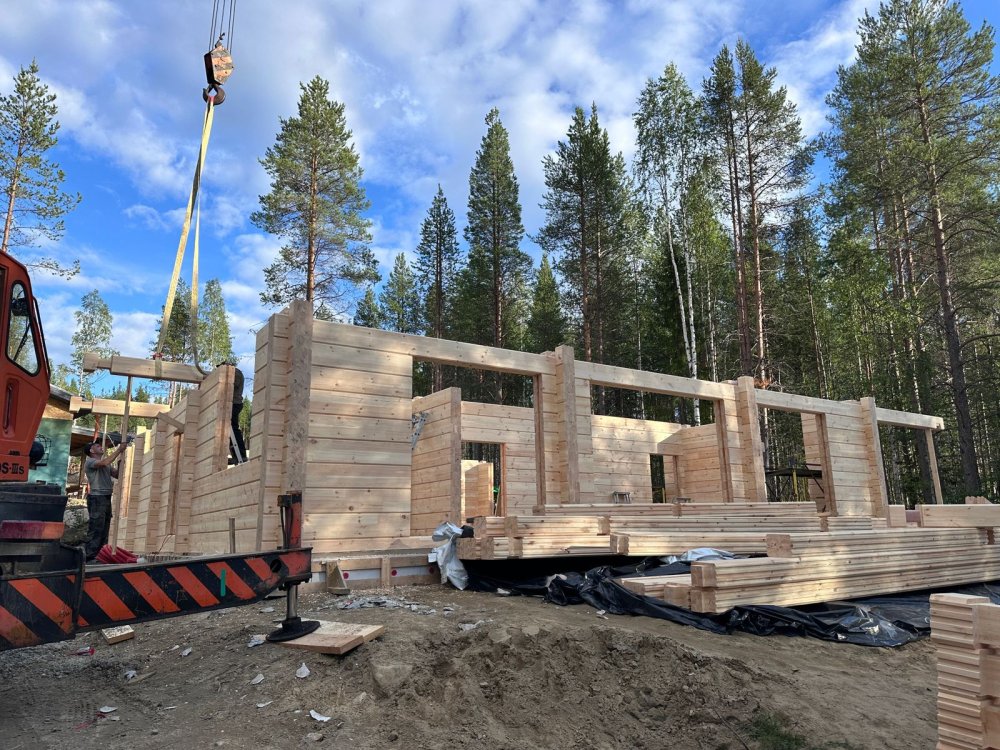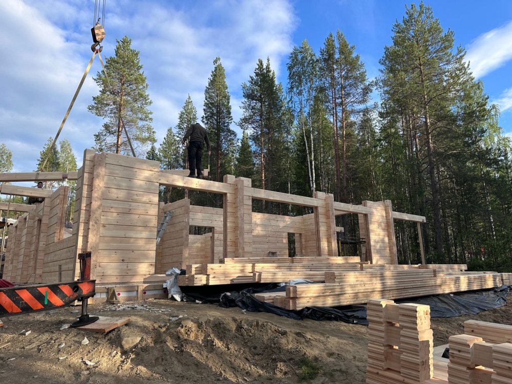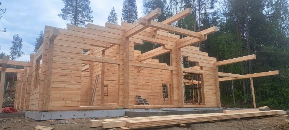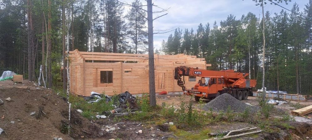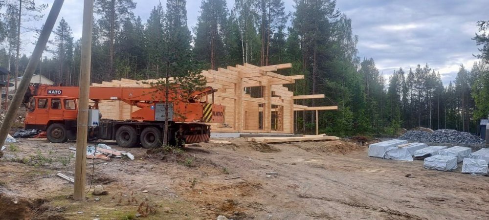 Еще не прошло и недели, а стеновой комплект из клееного бруса, сечением 270х205мм в городе Полярные зори, Мурманской области уже собран.