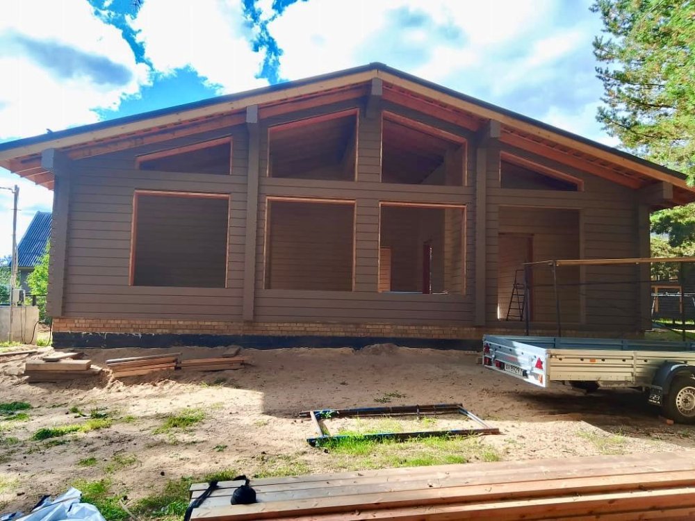 Дом в Рыбинске по индивидуальному проекту, который собрали в начале сентября покрасили лессирующим антисептиком Tikkurila Vinha. Получился очень красивый и необычный цвет дома.