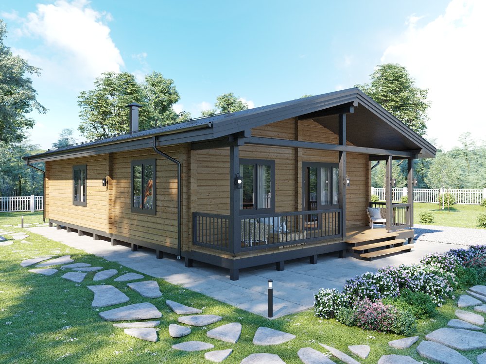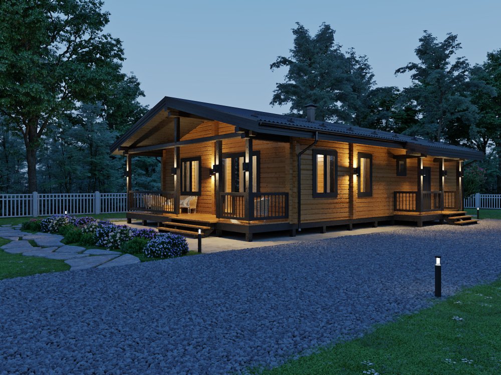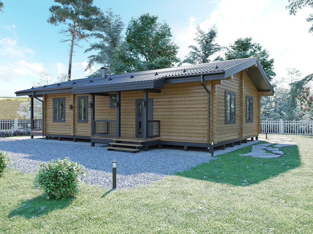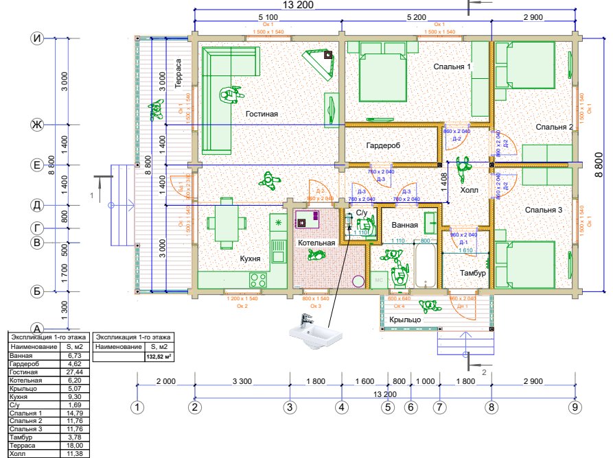 Проект Good 133 в классическом одноэтажном испонении, с двускатной кровлей. Стены из клееного бруса сечением 190hх205мм, площадью 132,5м2. Планировка предусматривает кухню гостинную 36,7м2, 3 спальни от 12 до 15м2, 2 с/у, гардероб, котельную. Так же имеется терраса 18м2. Для главного входа предусмотрено крыльцо 5м2.