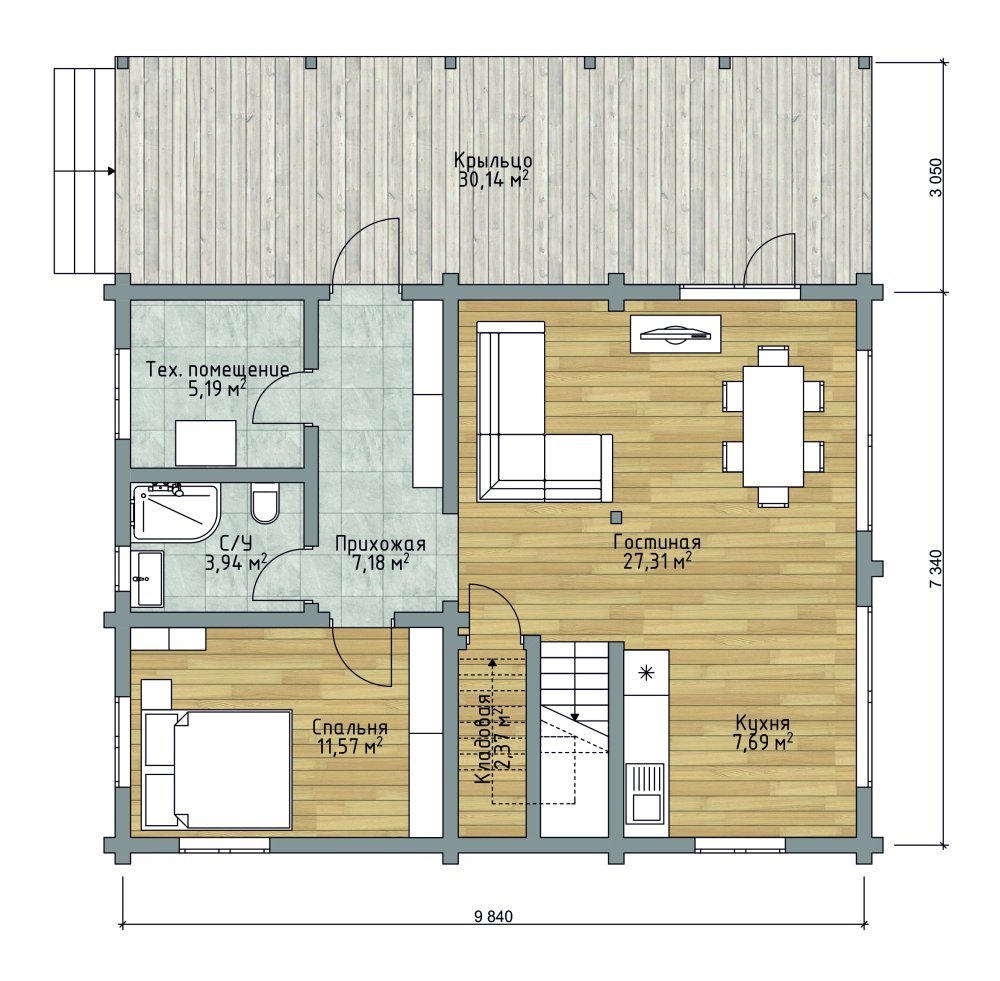 Проект доступен в других сечениях бруса. Цена по запросу.В ипотеку